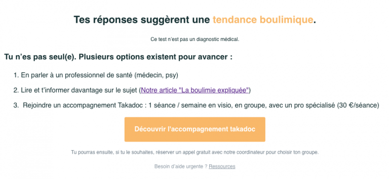 Non. Ce test est une auto-évaluation comportementale, basée sur des outils utilisés en recherche (EDE-Q, EDDS). Il n’a pas de valeur diagnostique médicale, mais permet d’identifier les comportements à risque ou les profils de fonctionnement les plus fréquents. Il vise avant tout à mieux comprendre votre rapport à la nourriture et à vous orienter vers les ressources les plus adaptées.